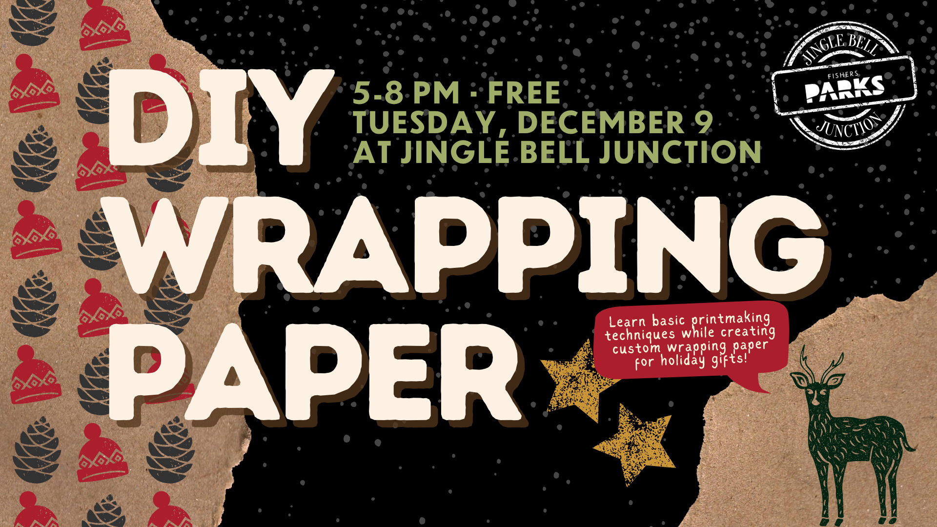 Add a personal, artistic touch to your gift giving this year by creating your own wrapping paper with Fishers Parks! You bring the ideas, and we’ll bring all the supplies! Use paint markers for freestyle design on pre-cut pieces of craft paper, or use our wood block printing technique with pre-cut designed stamps for the season! Bring your friends and family for this free holiday craft activity, and enjoy live acoustic tunes while you create. This drop-in event is free, and all are welcome!